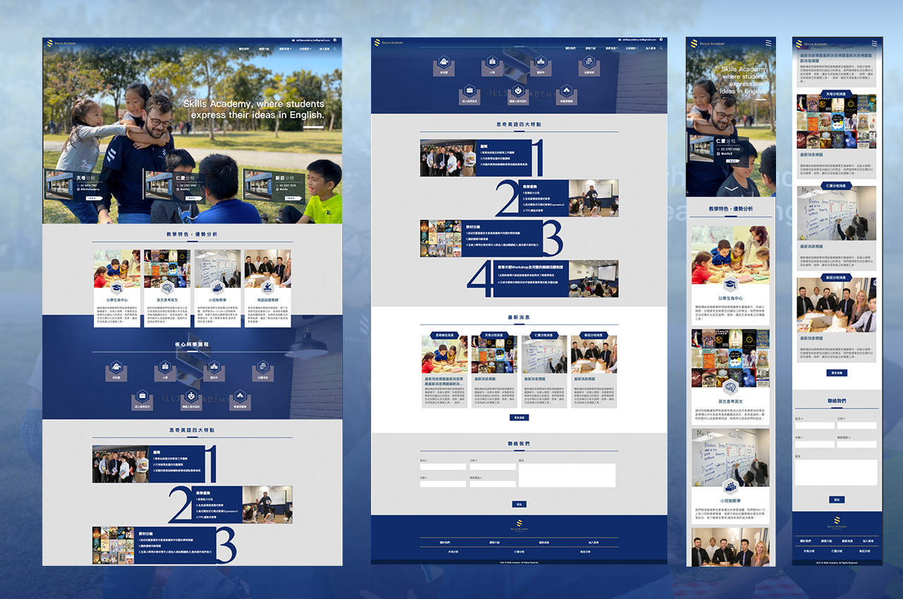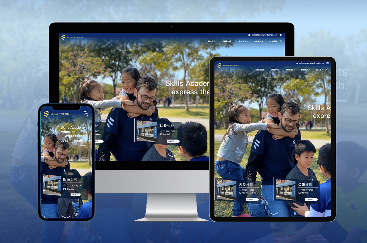 運用教學機構實體店面與企業識別的色系與氛圍做元素,延伸成網站視覺風格,藉此重複品牌形象,讓使用者有整體印象。